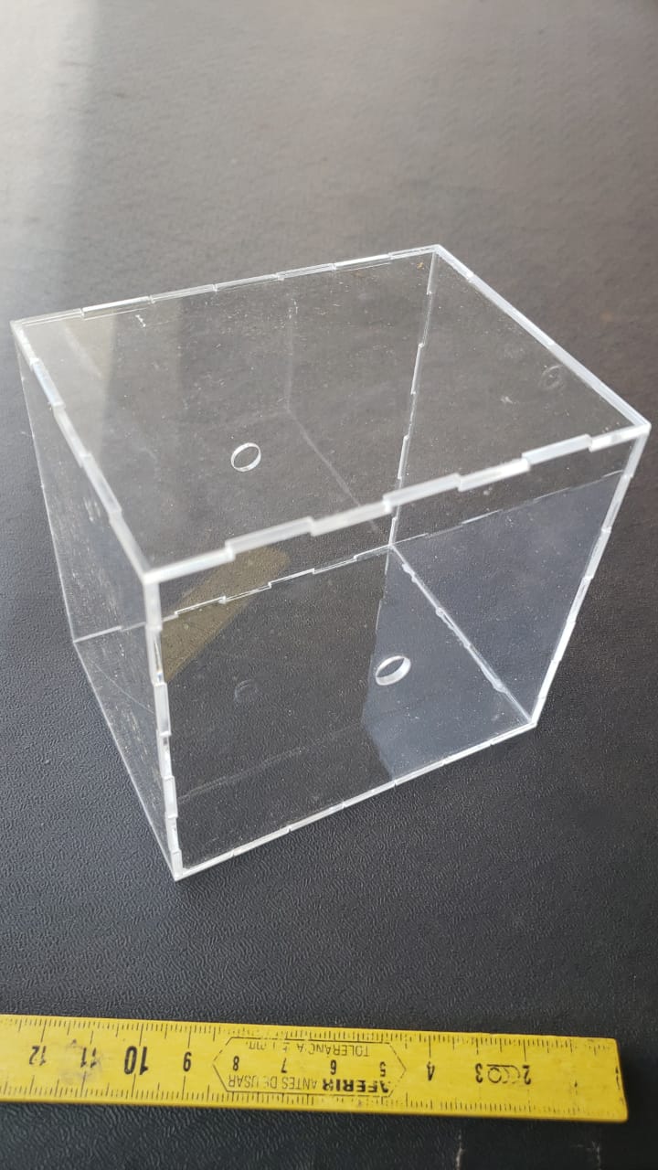 OBS: Caixinha enviada desmontada. Para montar retirar o plásico de proteção que irá nas partes. Colar com cola super bonder.